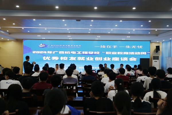 为全面贯彻落实党的二十大精神,充分发挥优秀校友榜样示范作用,加强职业生涯教育和就业指导,引导学生树立正确的成才观、职业观、就业观,5月21日下午,广西机电工程学校在2教701报告厅举办2024年“职业教育活动周”系列活动之优秀校友就业创业座谈会。该校师生200多人参加座谈。