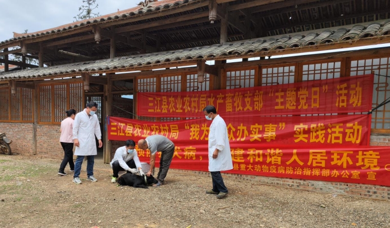 狂犬病是由狂犬病病毒侵害中枢神经系统而引起的一种急性致死性人畜共患传染病,病死率高达100%。狂犬病病毒几乎能感染所有温血动物,野生动物是该病主要储存宿主和传播载体,家犬在传播病毒中起重要作用。根据农业农村部印发的《全国畜间人兽共患病防治规划(2022-2030年)》文件和上级要求,三江县动物疫病防控机构,将该病种列为春防重点防控病种加以防控。