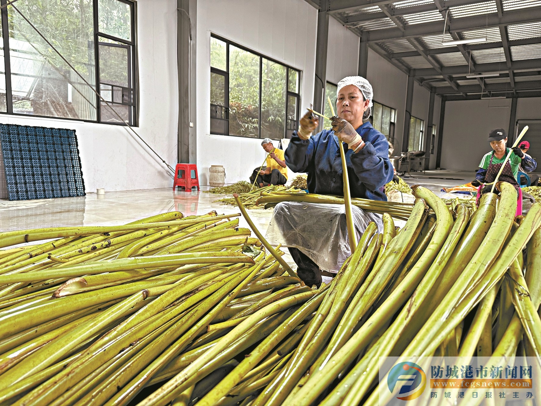 初夏时节,雨水连连。近日,记者冒着大雨走进防城区那良镇大村村的防城港市防城区茂峰种养专业合作社,看到车间内的工人正在忙着加工芋蒙,剥丝、去皮、切割、清洗、腌制……不同岗位的工人热火朝天地忙碌着。