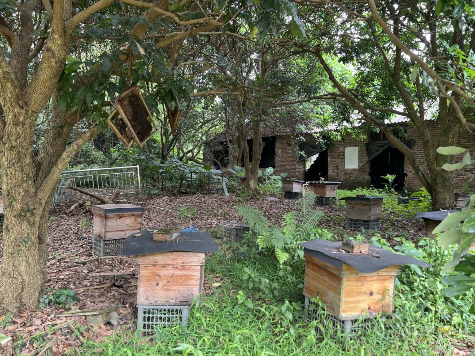 苏烟村村民院前屋后错落有致地摆放着土蜂箱