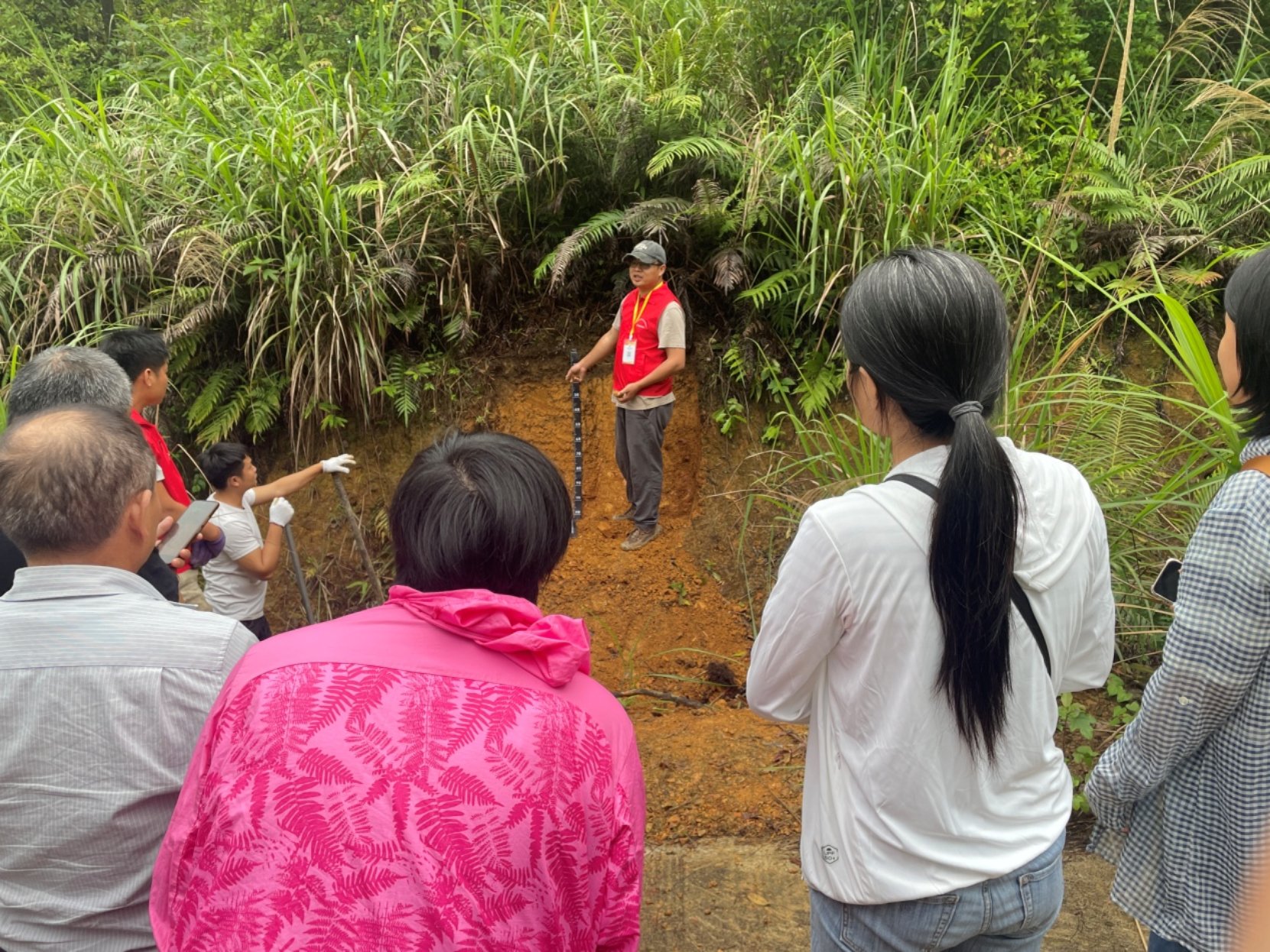 本次培训采取“理论培训+实地演练”的模式进行,周斌领队先就立地条件调查、剖面设置与挖掘、土壤剖面发生层划分与命名、土壤剖面形态观察与记录等剖面采样重要内容进行细致介绍;在实地演练环节,周斌领队选取了耕地、林地两种土地利用类型的实地剖面,针对剖面调查采样和全程质量控制的各项关键环节讲解,并对剖面样点调查采样过程中遇到的常见问题进行解答,用实操巩固理论,做到学以致用。
