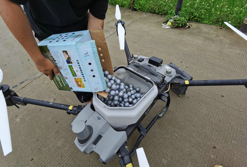 活动开始,植保技术员现场向农户们讲解赤眼蜂防治螟虫原理和技术,以及水稻日常病虫防治注意事项。随后,植保技术人员利用无人机每亩每次均匀投放4个蜂球放蜂器,每个蜂球放蜂器内含2000头赤眼蜂,单造水稻共释放 3次,每隔5天左右一次。活动当天累计投放面积1000余亩,培训农户40余人次。