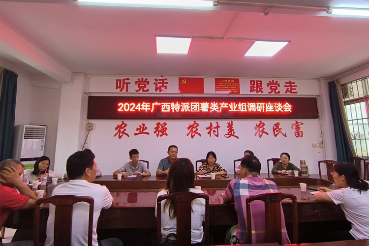 为进一步做好2024年广西乡村振兴重点帮扶县藤县科技服务团薯类产业组服务地方产业发展水平,加强科研院所和地方政府、企业合作力度,6月2日,广西乡村振兴重点帮扶县科技特派团藤县团薯类产业组王爱勤教授一行7人,赴藤县开展科技服务活动。