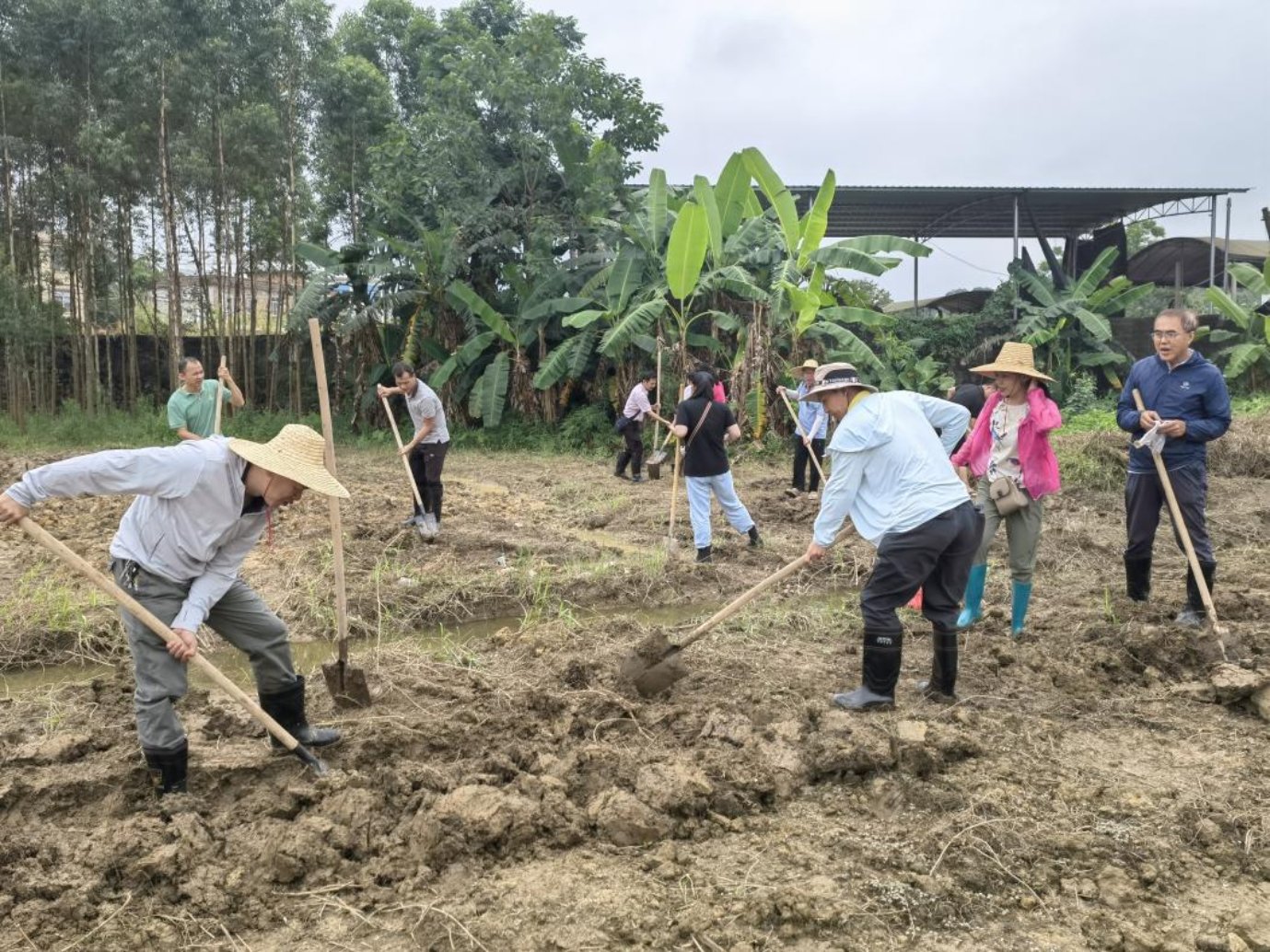 近日,在南江街道七一村的撂荒田里,农技人员、村干部和村民们戴上草帽、撸起袖子、低头弯腰、挥起铲子忙碌在田间地头,经过清理、翻地、起垄,昔日撂荒的土地被整理成平整松软的耕地,播种下的一粒粒玉米成为了这片农田的新希望。