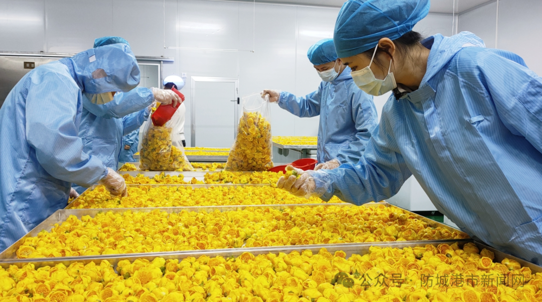 为持续打造大旺金花茶品牌,2023年底,经“金花党建联盟”商议,决定成立村级平台公司——东兴市东旺振兴农业有限公司,并投入扶持资金50万元升级大旺金花茶产业园标准厂房,目前已引进3条冻干生产线。