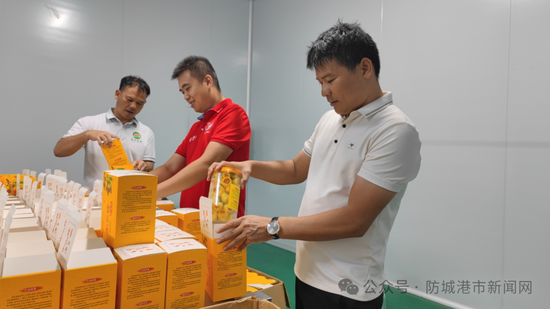 6月25日上午,东兴市马路镇大旺村下着不小的雨。刚从车上下来的何深福两手拎着个大纸箱,冒着雨一个箭步冲进了东兴市大旺金花茶产业园的厂房里。纸箱里装着200多个金花茶产品包装盒。