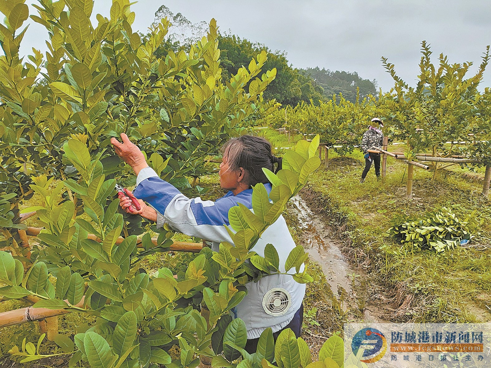 6月7日,记者走进防城区华石镇冲敏村香水柠檬种植基地,一阵阵沁人心脾的柠檬清香扑面而来,顺着香气放眼望去,一排排柠檬树整齐排列,宛如一幅幅绿色的地毯延伸向远方,零星结在枝头上的香水柠檬若隐若现,在光线照射下闪烁着诱人的光泽。工人们穿梭在柠檬树下,有的正在给树叶修枝(见上图),有的正在施肥,有的正在浇水……
