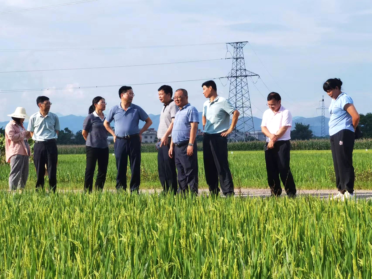 黄文校一行在贺州市八步区安安家庭农场水稻种植基地调研