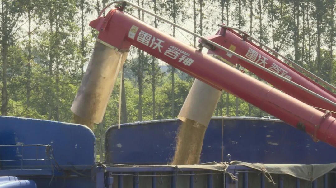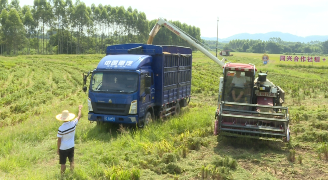 指挥着收割机的忙碌身影