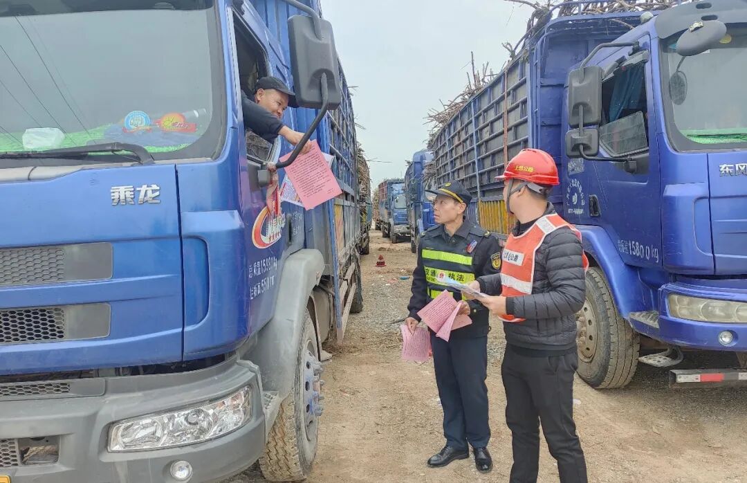 近日,上思公路养护中心联合上思县交通运输综合行政执法大队深入广西上上糖业有限公司、上思县万发西部停车场,开展“心系蔗糖业发展”普法入企宣传大行动。 活动中,宣传人员和执法人员深入企业,与企业糖料蔗运输相关负责人面对面沟通,近距离了解企业发展需求进行交流,引导企业依法生产安全运输经营与规范管理,提高生产经营风险防控能力。同时,就优化法治化道路运输经营环境工作向企业征求意见和建议。宣传人员和执法人员还与广大货车司机朋友面对面深入细致地解读《中华人民共和国公路法》《中华人民共和国民法典》《中华人民共和国道路交通安全法》等法律法规知识,并结合相关典型案例以案释法,用通俗易懂的语言把法律知识送到企业管理者和糖料蔗运输驾驶员身边,提醒他们驾驶货车上路时要注意货物运载安全,文明行车,预防和减少甘蔗运输车辆甘蔗撒落引起的交通事故,共同维护公路文明、安全、有序、保障糖料运输高效顺畅。