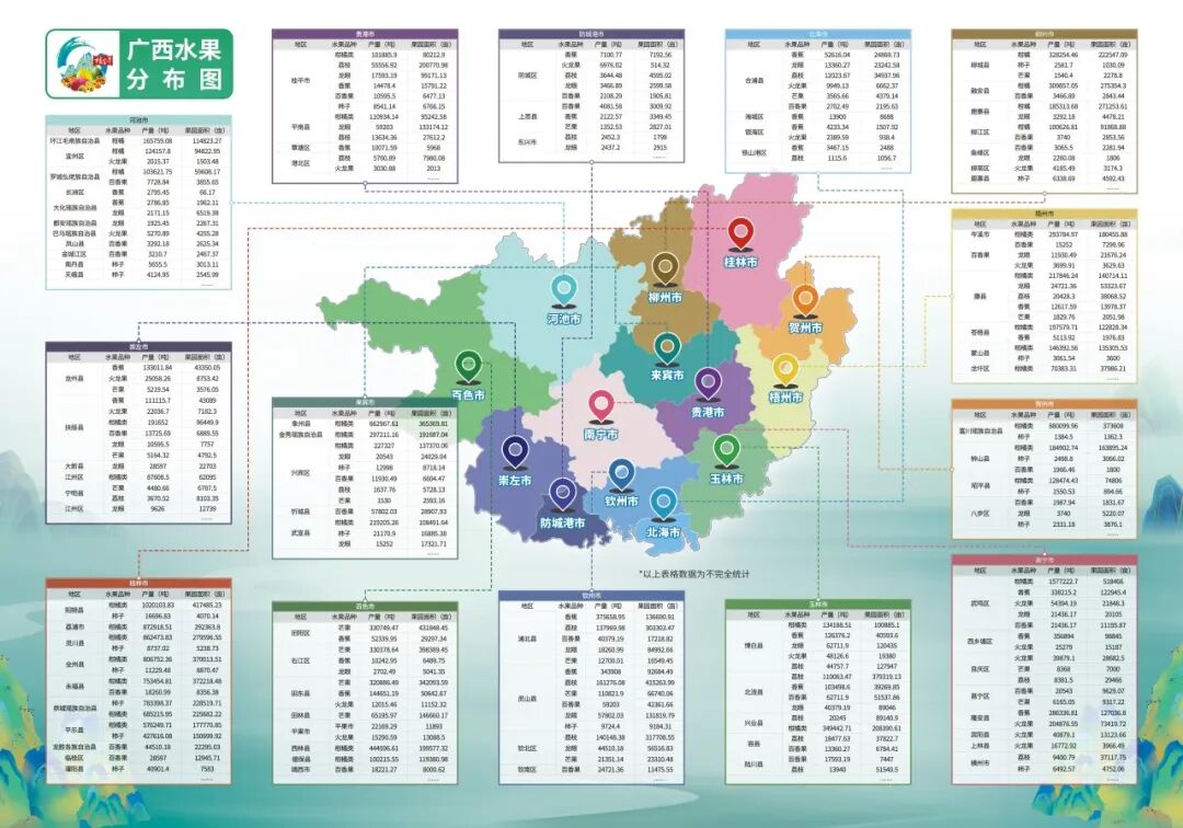 近年来,广西砂糖橘种植面积持续扩大,产业规模日渐庞大。2022年,广西柑橘类种植面积947.98万亩,投产面积849.44万亩,总产1868.34万吨。其中,广西砂糖橘种植面积达到325万亩,产量达到684万吨,分别分布在桂林、柳州、梧州、百色、来宾、南宁等产区。砂糖橘产业的蓬勃发展不仅为果农带来了丰厚的收益,更为广西的经济发展注入了活力。