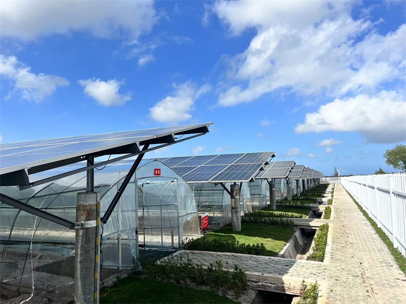 “我们这里有近1700亩,分为农业大棚种植区域和露天种植区域。其中,农业大棚种植区域有110个农业大棚,目前种植了西瓜、茄子、萝卜、豆角、花生、辣椒、斑兰等近十种瓜菜和作物。”大唐(海南)新能源开发有限公司工程部副主任傅燮彪介绍,该项目为公司于2021年开工建设的“农光互补+储能示范”项目,利用光伏板下空间建设简易大棚,将撂荒地开发成蔬菜种植基地,既提升了土地利用率,降低了光伏产业发展成本,又带动了周边村民就业。