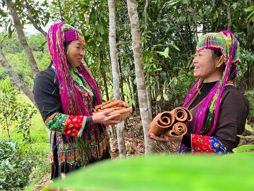 ▲瑶族同胞手捧防城肉桂。