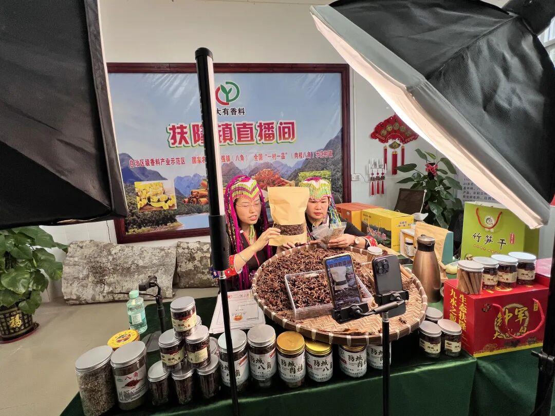 ▲主播介绍八角、肉桂等当地产品。