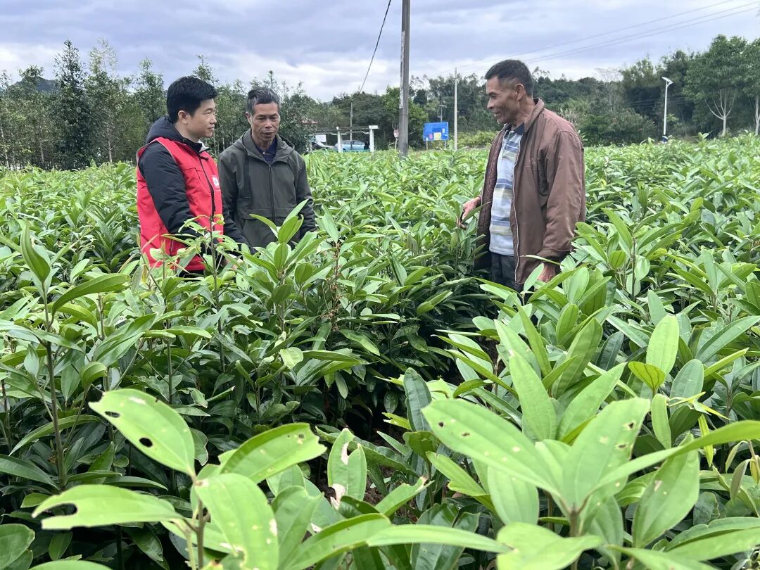 ▲科技特派员指导村民种植肉桂。