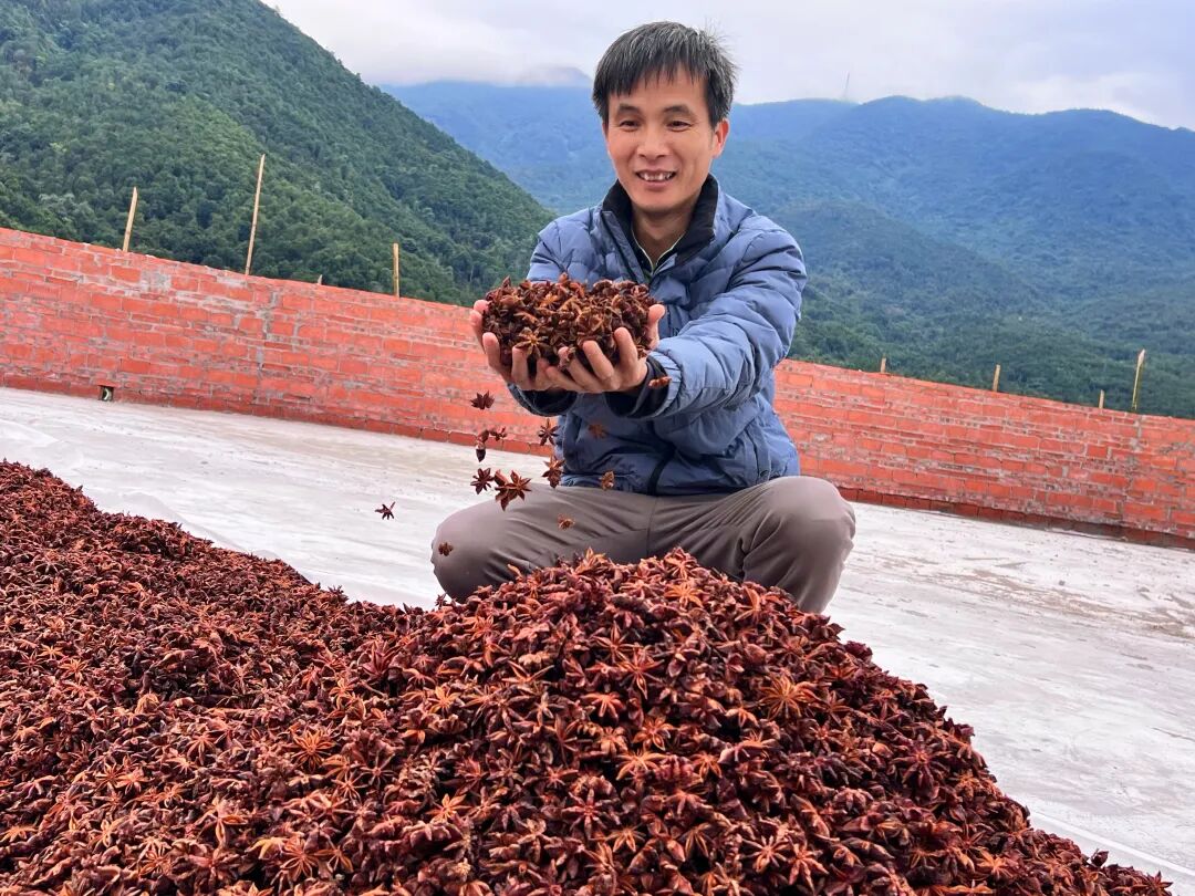 ▲农户手捧大红八角。