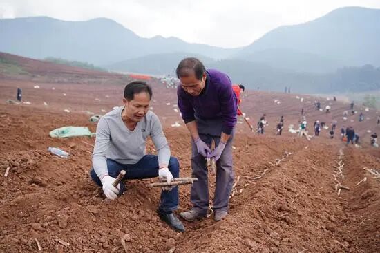 十万大山春耕工作服务队员同群众携手开展春耕工作。刘柳龙 摄