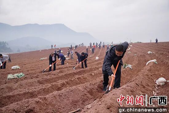 十万大山春耕工作服务队员同群众携手开展春耕工作。熊国龙 摄
